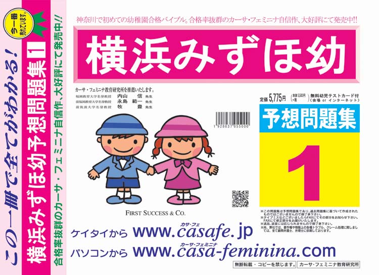 横浜みずほ幼稚園 過去問+プラス<合格査定テスト付> 1割引(最新の過去問題集1冊[HPにある過去問のうちの最新]、合格査定テスト)