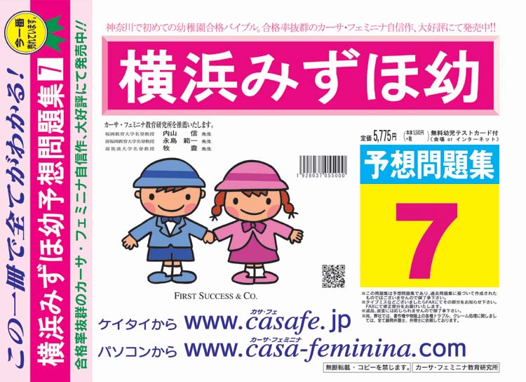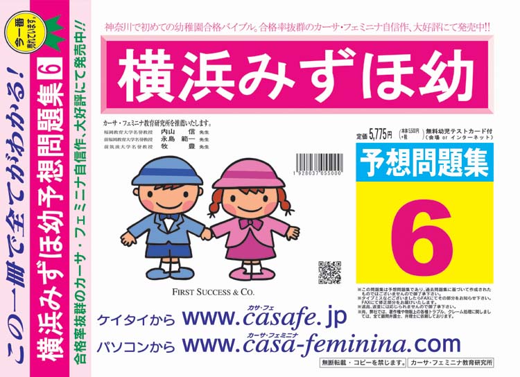 横浜みずほ幼稚園 合格福袋セット 2割引(最新の過去問題集1冊[HPにある過去問のうちの最新]+親の過去問合格セット5冊+分野別過去問1~6)