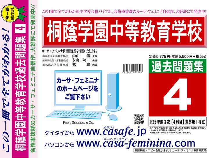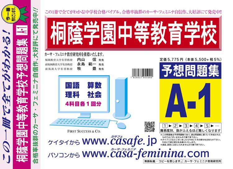 桐蔭学園中等教育学校 初心者セット 1割引(最新の過去問題集1冊[HPにある過去問のうちの最新]+予想問題集A1)