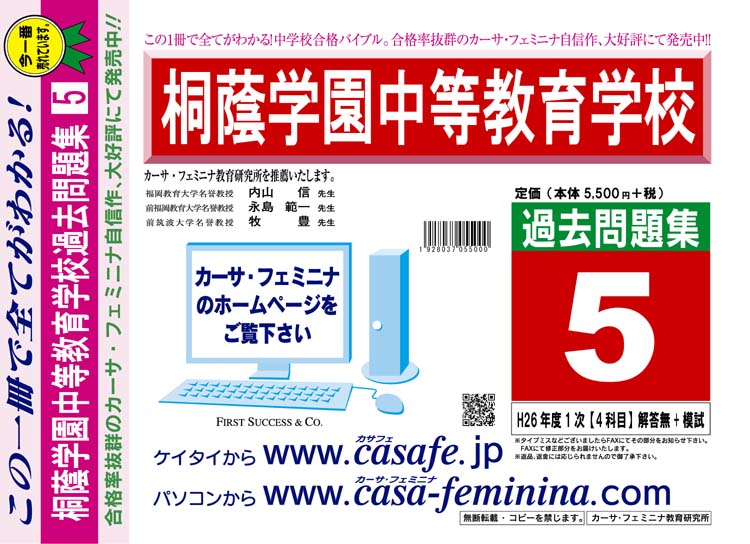 桐蔭学園中等教育学校 最新過去問5ヶ年セット[HPにある過去問のうちの5ヶ年] 2割引