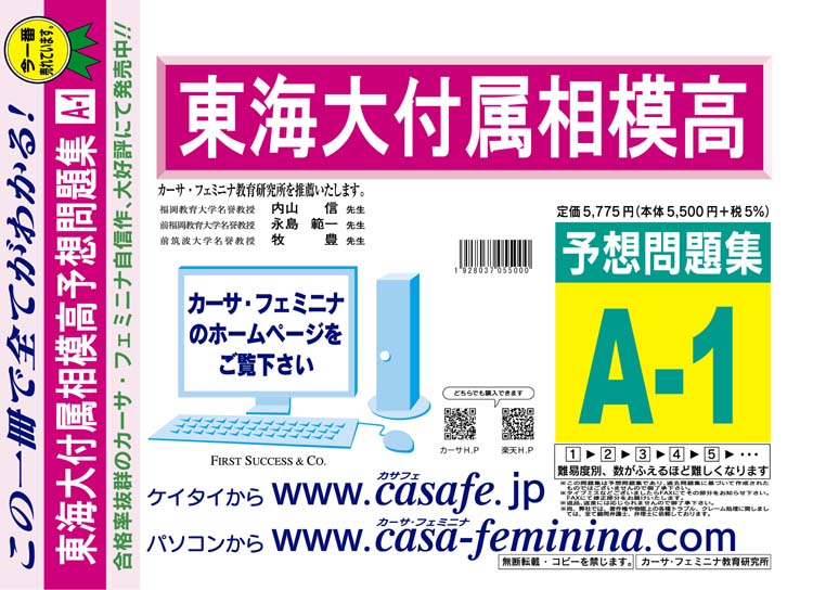 東海大学付属相模高校 初心者セット 1割引(最新の過去問題集1冊[HPにある過去問のうちの最新]+予想問題集A1)