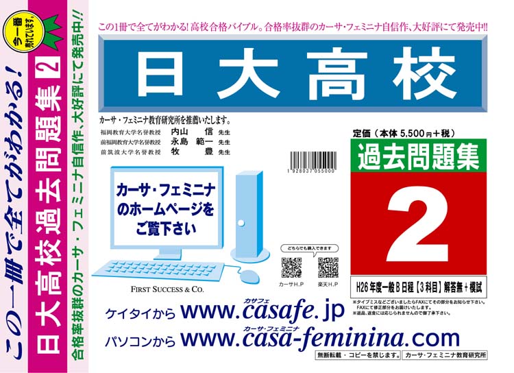 日本大学高校 初心者セット 1割引(最新の過去問題集1冊[HPにある過去問のうちの最新]+予想問題集A1)