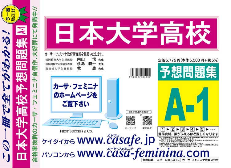 日本大学高校 最新過去・予想・模試5種セット 1割引(最新の過去問題集1冊[HPにある過去問のうちの最新]、予想問題集A1、直前模試A1、合格模試A1、開運模試A1)
