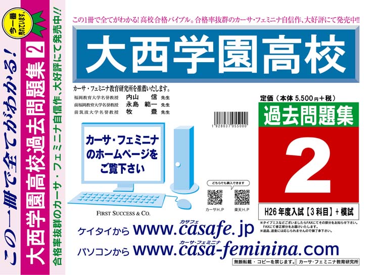 大西学園高校 H27年度用過去問題集2(H26【3科目】+模試)