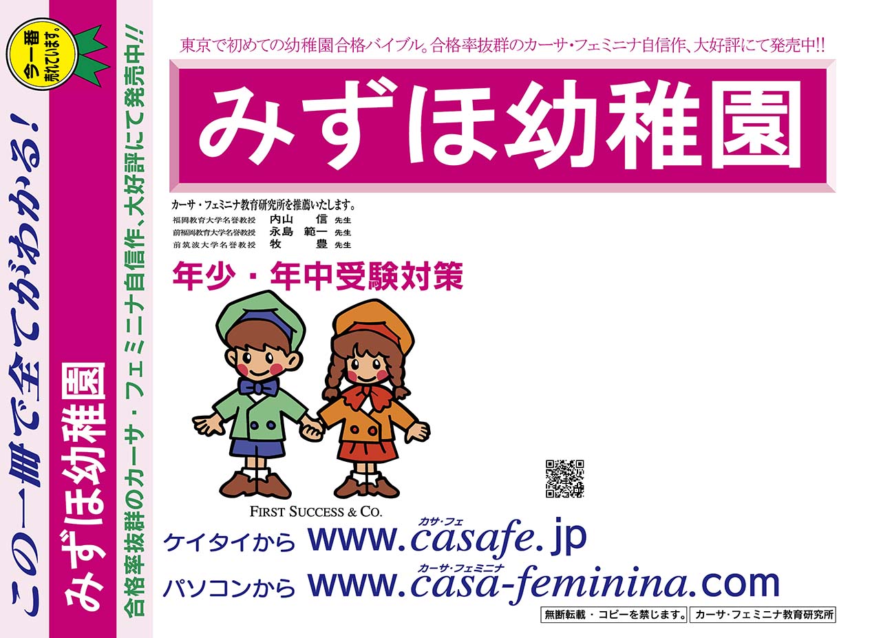 HOME 2027年度用過去問題集21(2026+幼児テスト) 2027年度用過去問題集21(2026+幼児テスト) 2027年度用過去問題集21(2026+幼児テスト) みずほ幼稚園 2027年度用過去問題集21(2026+幼児テスト) 商品番号:113-C8001-21価格: 6,050 円 購入はこちら 合格体験談 お問い合わせ 3大プレゼント申込み方法 初めての方へ・合格実績 期間限定講座 カーサからのお知らせ(最新情報) 12,000人のQ&A 幼・小受験会場テスト会お申込み(無料) 中~大学受験会場テスト会お申込み(無料) 合格セミナー・イベント オンデマンドテスト会(無料) インターネットテスト会(無料) 幼稚園・小学校入試アンケート マスコミ取材 新刊案内・NEW BOOK お受験のカリスマブログ 入試情報メールマガジン受付 書店様・新刊メールマガジン受付 季節がわかる課外レッスン動画