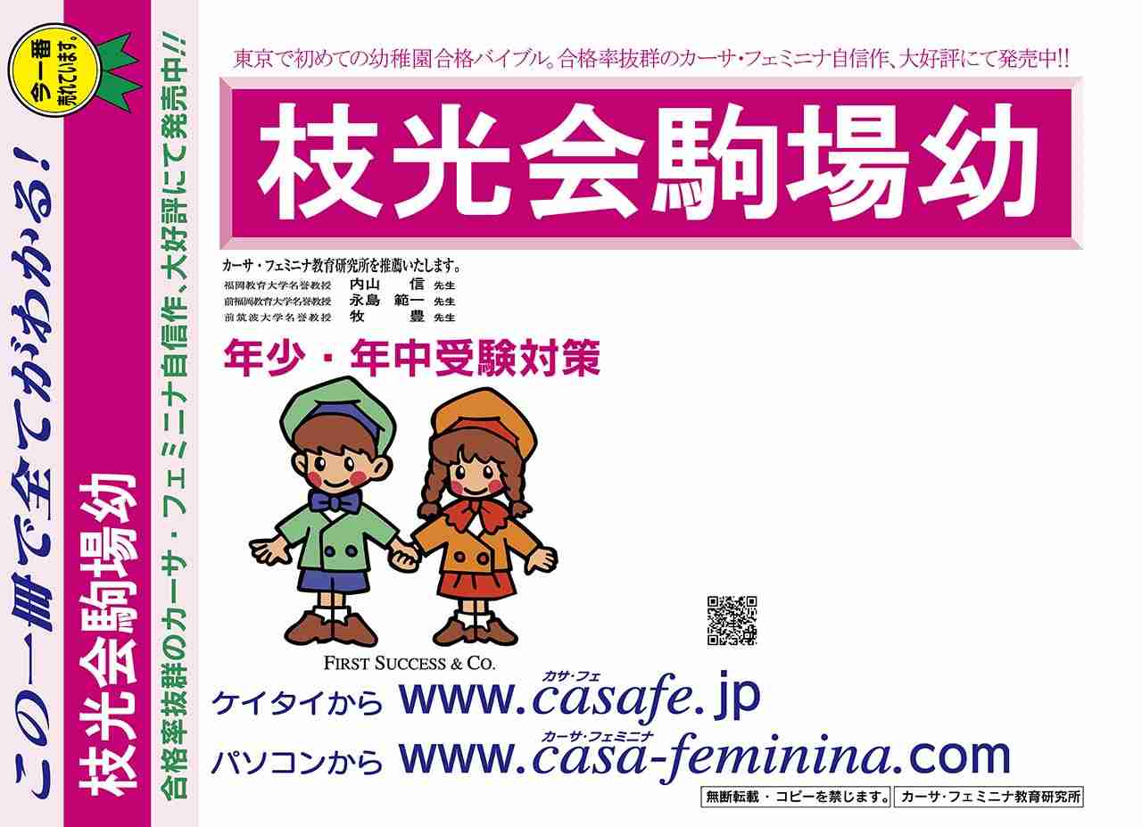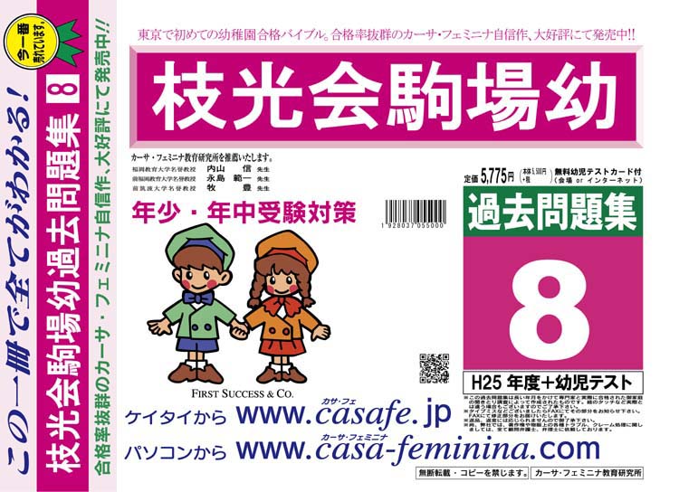 枝光会駒場幼稚園 過去問+プラス<合格査定テスト付> 1割引(最新の過去問題集1冊[HPにある過去問のうちの最新]、合格査定テスト)