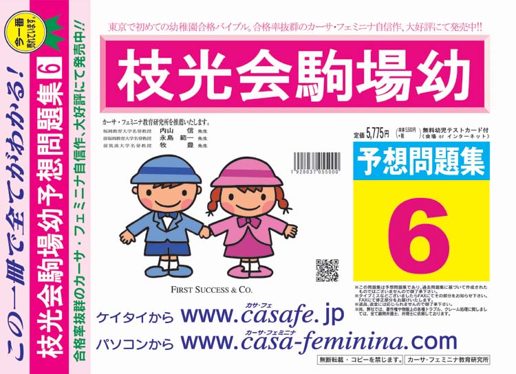 枝光会駒場幼稚園 合格福袋セット 2割引(最新の過去問題集1冊[HPにある過去問のうちの最新]+親の過去問合格セット5冊+分野別過去問1~6)