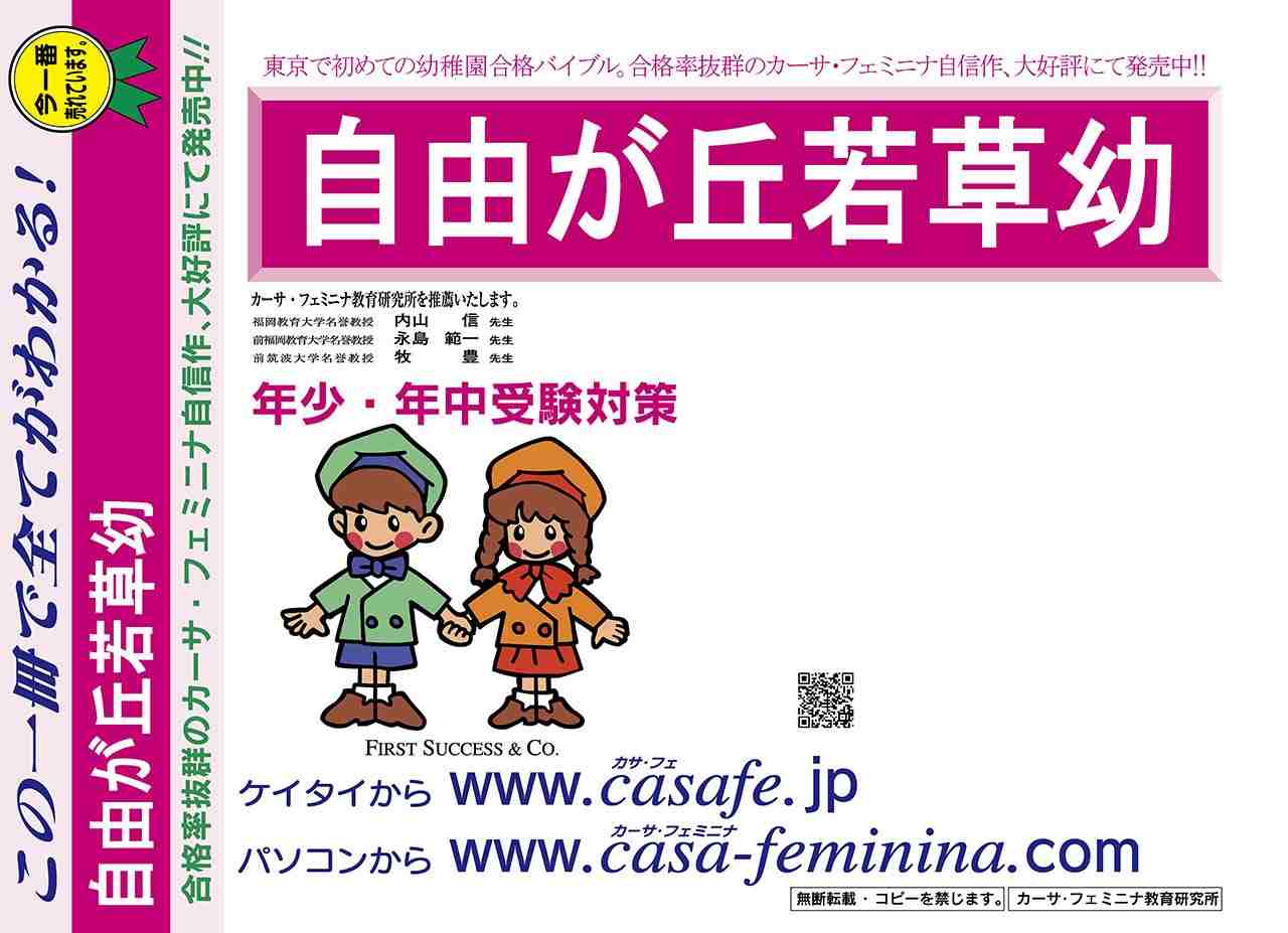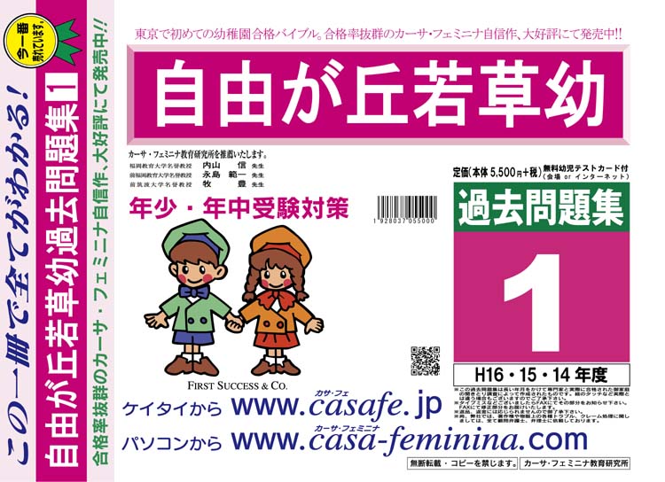 自由が丘若草幼稚園 過去問+プラス<合格査定テスト付> 1割引(最新の過去問題集1冊[HPにある過去問のうちの最新]、合格査定テスト)