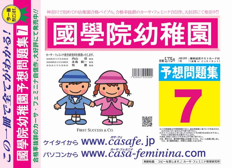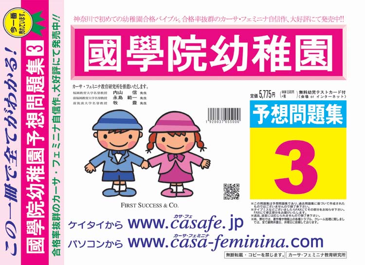 國學院幼稚園 最新過去問3ヶ年セット[HPにある過去問のうちの3ヶ年] 1割引