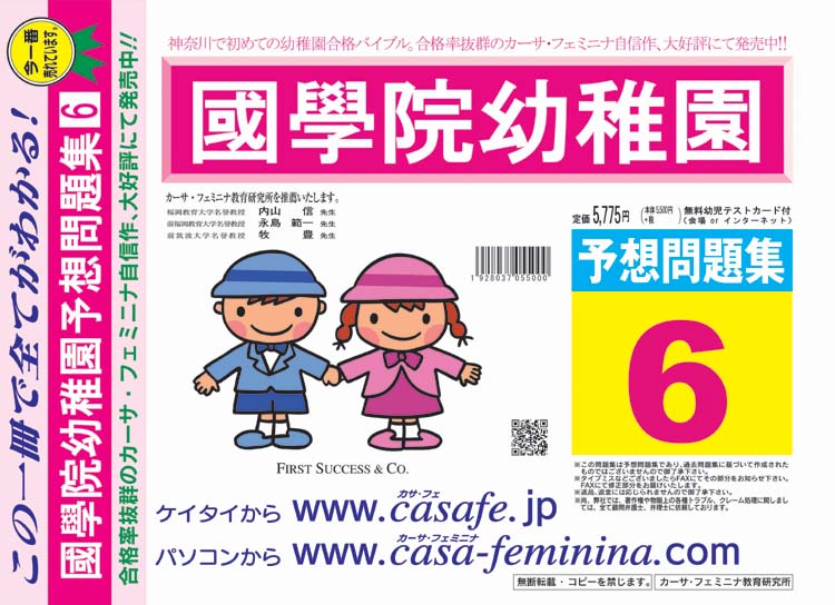 國學院幼稚園 合格福袋セット 2割引(最新の過去問題集1冊[HPにある過去問のうちの最新]+親の過去問合格セット5冊+分野別過去問1~6)