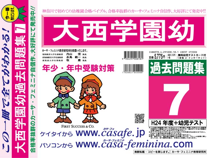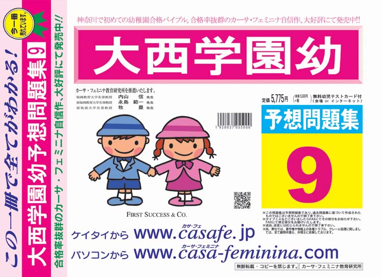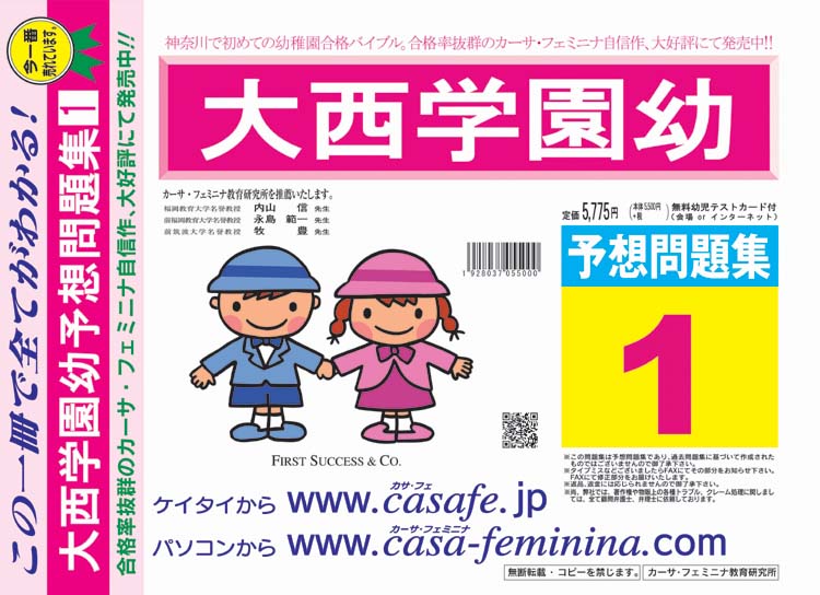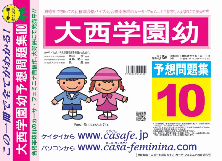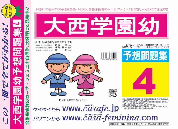 大西学園幼稚園 過去問+プラス<合格査定テスト付> 1割引(最新の過去問題集1冊[HPにある過去問のうちの最新]、合格査定テスト)