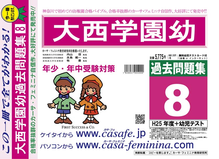 大西学園幼稚園 H26年度用過去問題集8(H25+幼児テスト)