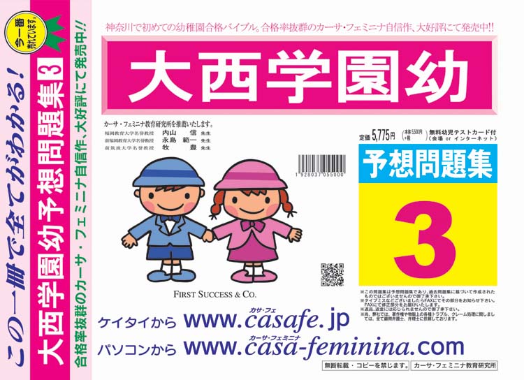 大西学園幼稚園 最新過去問3ヶ年セット[HPにある過去問のうちの3ヶ年] 1割引