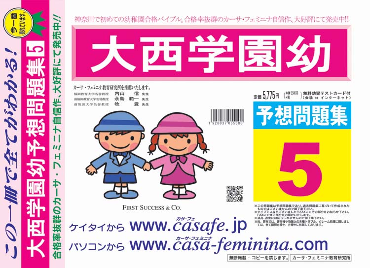 大西学園幼稚園 最新過去問5ヶ年セット[HPにある過去問のうちの5ヶ年] 2割引