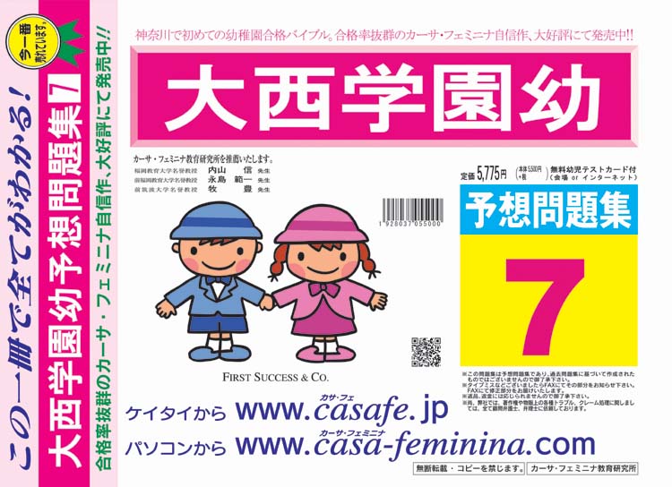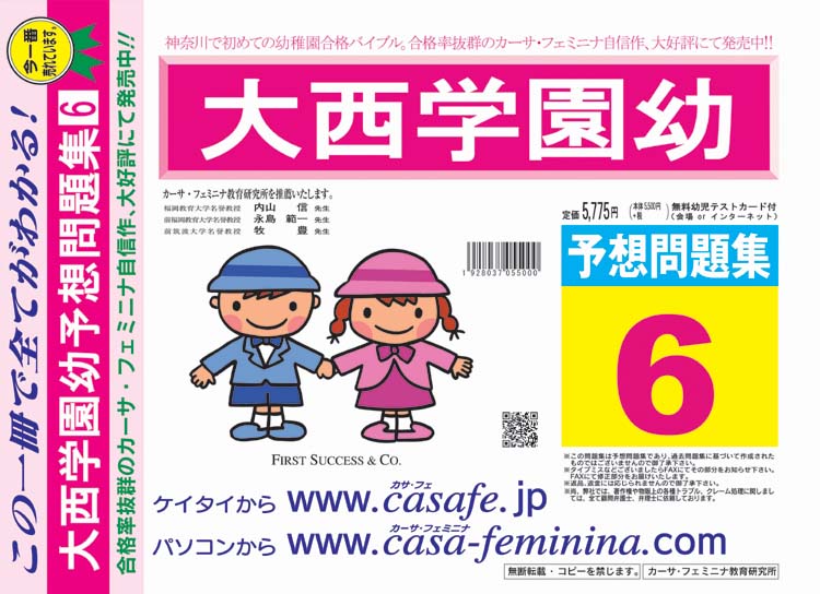 大西学園幼稚園 合格福袋セット 2割引(最新の過去問題集1冊[HPにある過去問のうちの最新]+親の過去問合格セット5冊+分野別過去問1~6)