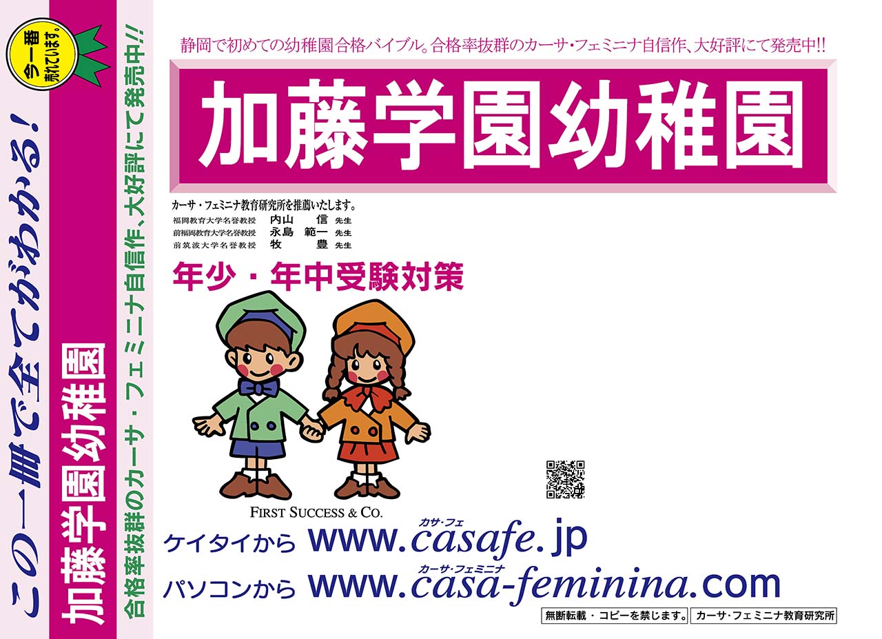加藤学園幼稚園 過去問+プラス<合格査定テスト付> 1割引(最新の過去問題集1冊[HPにある過去問のうちの最新]、合格査定テスト)