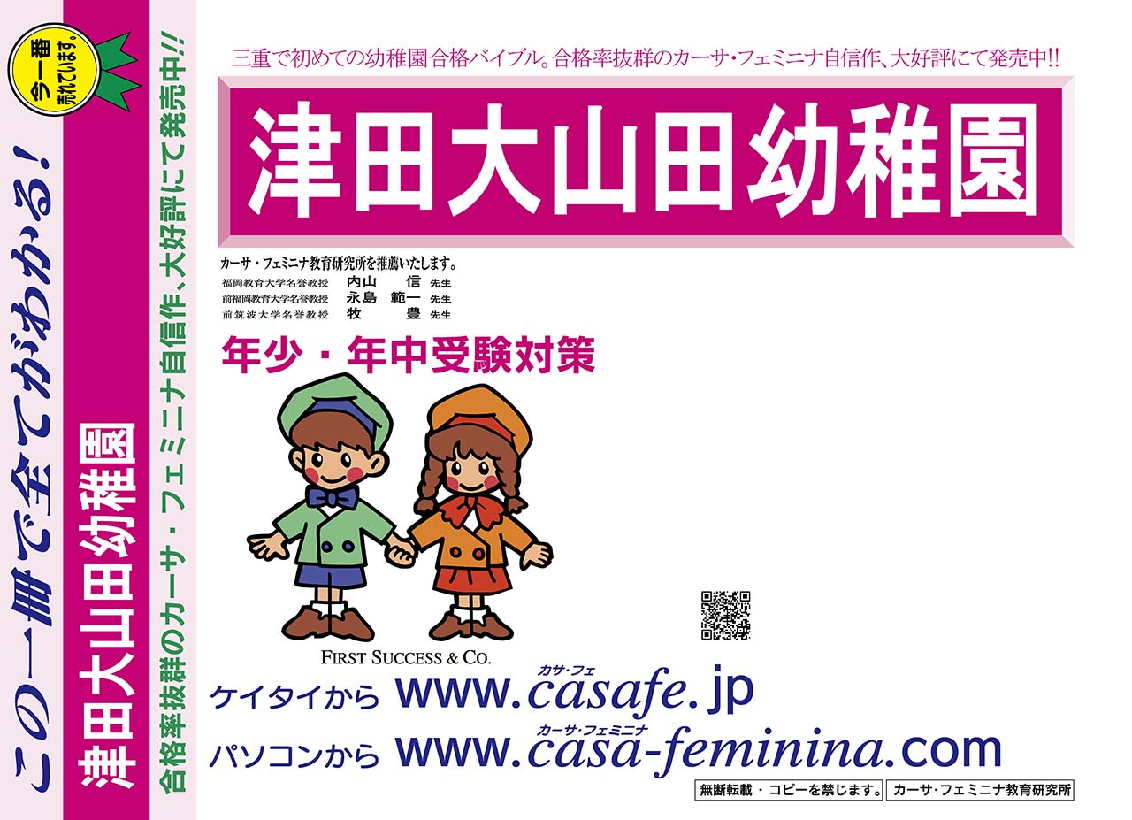 津田大山田幼稚園 初心者セット 1割引(最新の過去問題集1冊[HPにある過去問のうちの最新]+予想問題集A1)