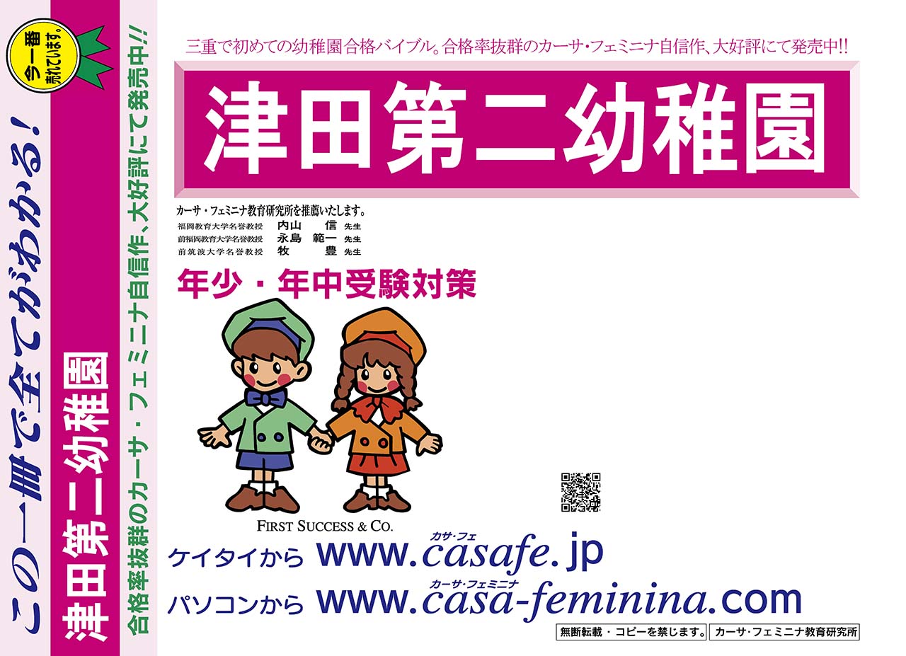 津田第二幼稚園 過去問合格セット 1割引(過去問題集1〜21、「合格願書本」1〜2、「合格面接本」1〜2、「合格体験本・サクラサク」1)