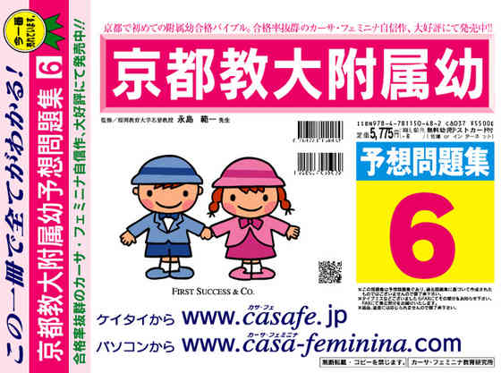 京都教育大学附属幼稚園 合格福袋セット 2割引(最新の過去問題集1冊[HPにある過去問のうちの最新]+親の過去問合格セット5冊+分野別過去問1~6)