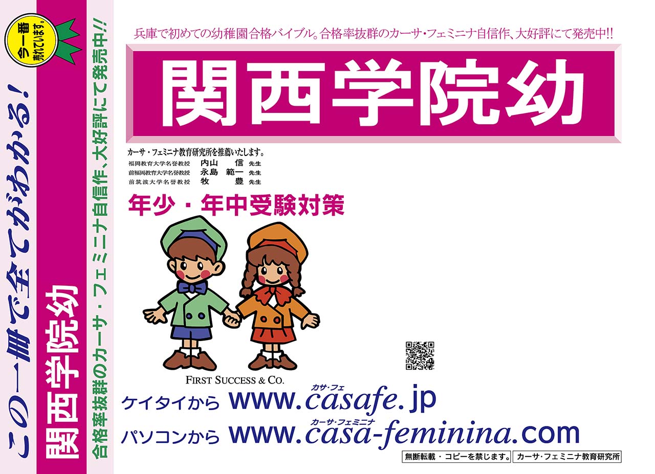 関西学院幼稚園 過去問+プラス<合格査定テスト付> 1割引(最新の過去問題集1冊[HPにある過去問のうちの最新]、合格査定テスト)