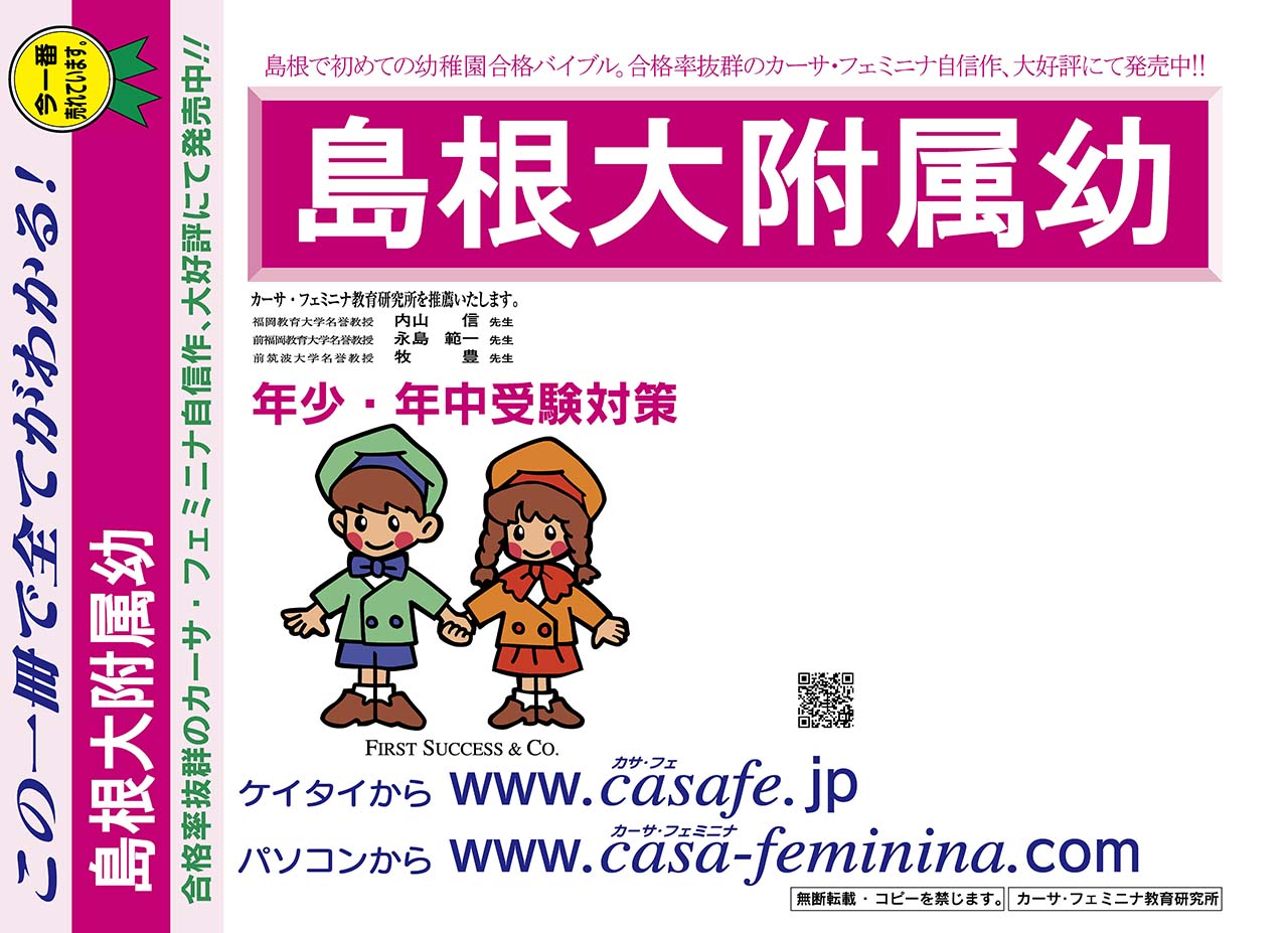 島根大学附属幼稚園 合格福袋セット 2割引(最新の過去問題集1冊[HPにある過去問のうちの最新]+親の過去問合格セット5冊+分野別過去問1~6)
