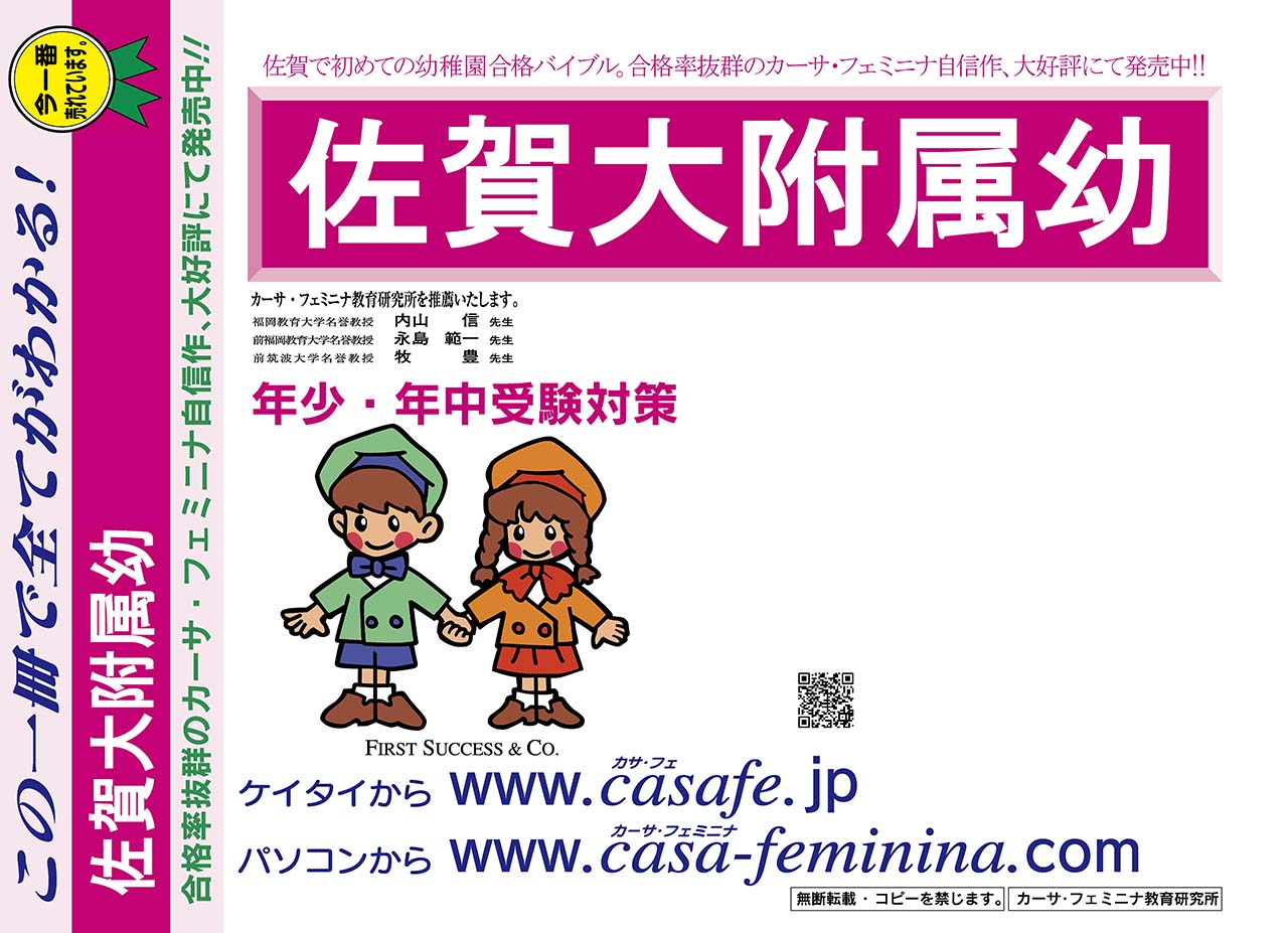 佐賀大学附属幼稚園 過去問合格セット 1割引(過去問題集1〜21、「合格願書本」1〜2、「合格面接本」1〜2、「合格体験本・サクラサク」1)