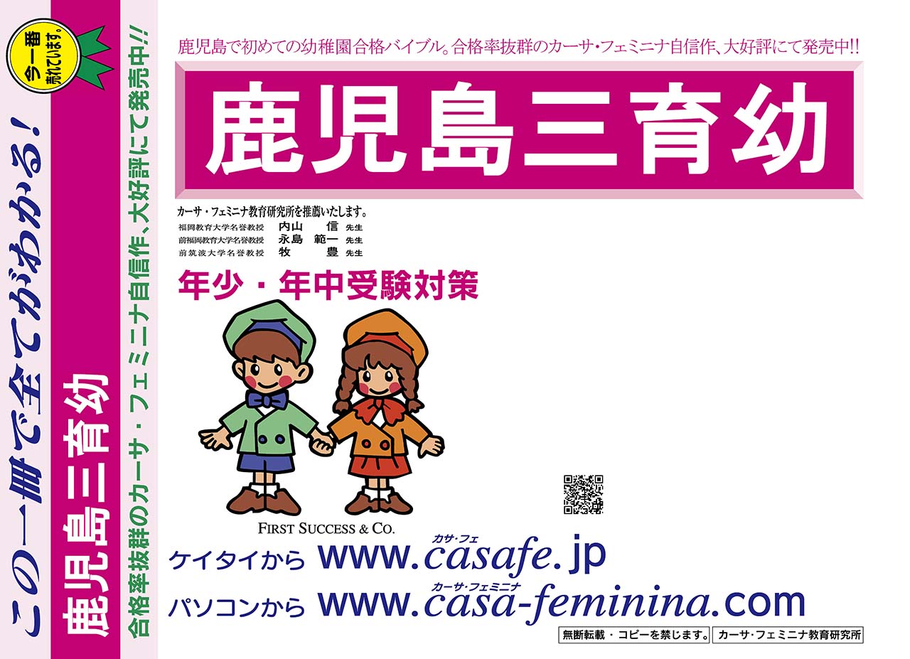 鹿児島三育幼稚園 過去問合格セット 1割引(過去問題集1〜21、「合格願書本」1〜2、「合格面接本」1〜2、「合格体験本・サクラサク」1)