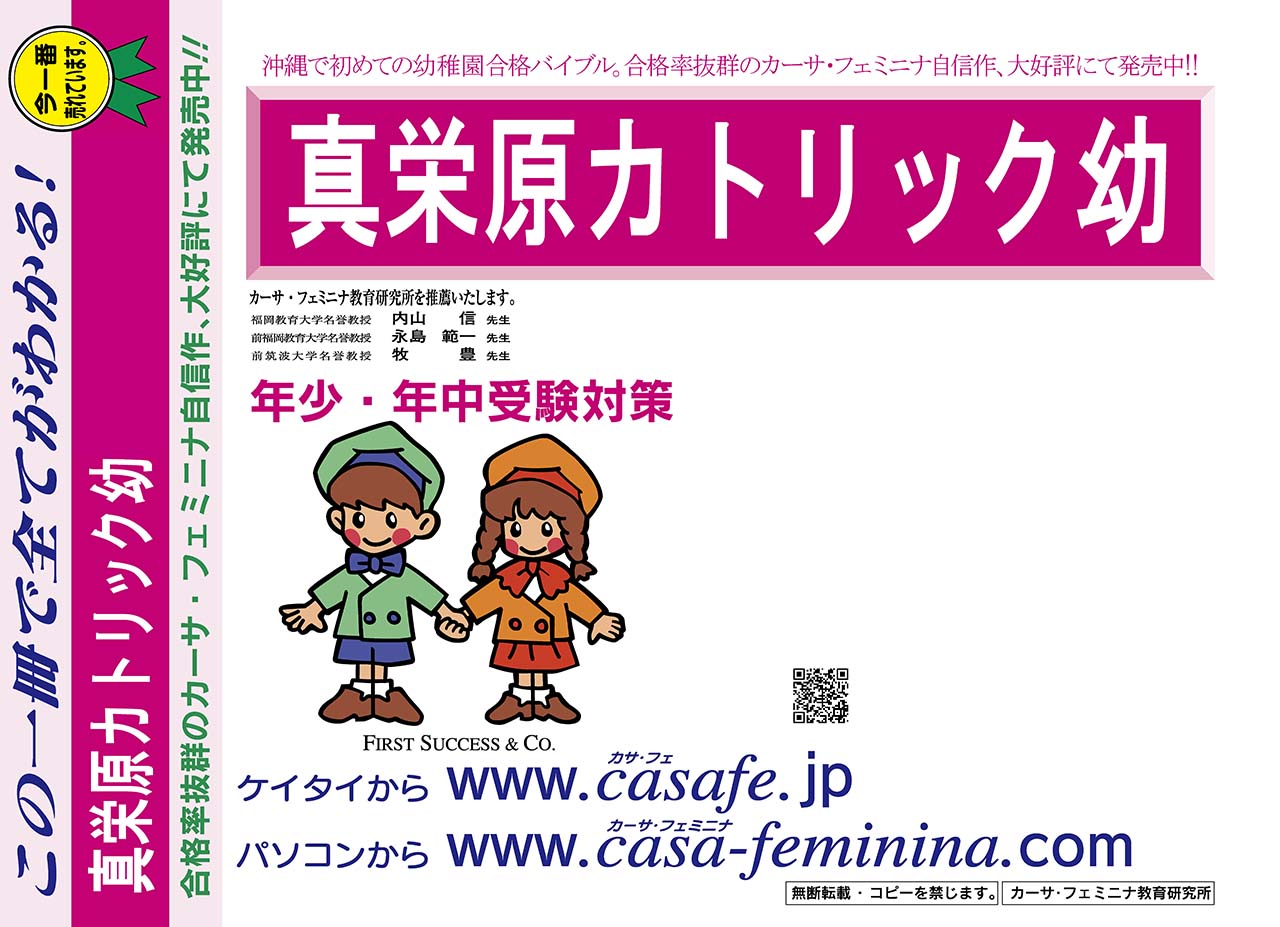 真栄原カトリック幼稚園 過去問合格セット 1割引(過去問題集1〜21、「合格願書本」1〜2、「合格面接本」1〜2、「合格体験本・サクラサク」1)