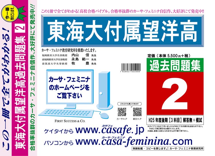 東海大学付属望洋高校 初心者セット 1割引(最新の過去問題集1冊[HPにある過去問のうちの最新]+予想問題集A1)