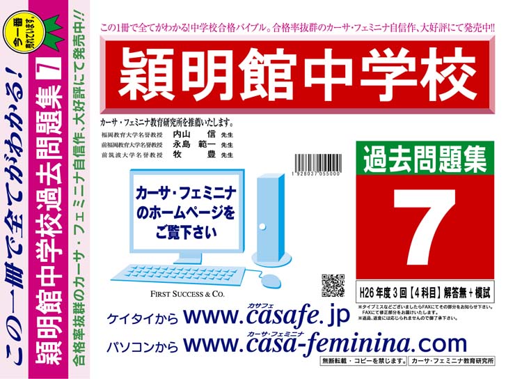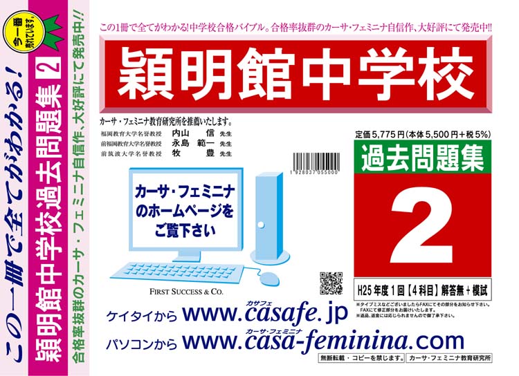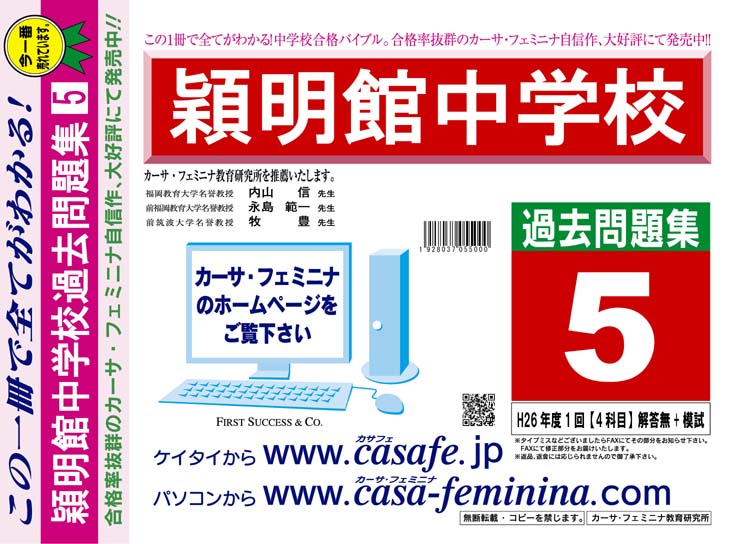 穎明館中学校 最新過去・予想・模試5種セット 1割引(最新の過去問題集1冊[HPにある過去問のうちの最新]、予想問題集A1、直前模試A1、合格模試A1、開運模試A1)