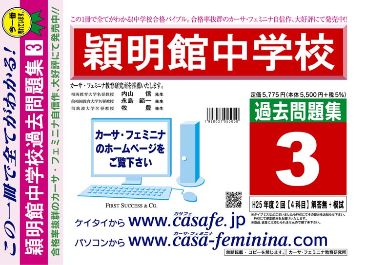 穎明館中学校 最新過去問3ヶ年セット[HPにある過去問のうちの3ヶ年] 1割引