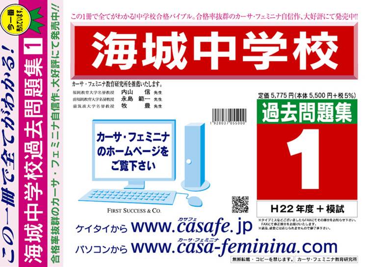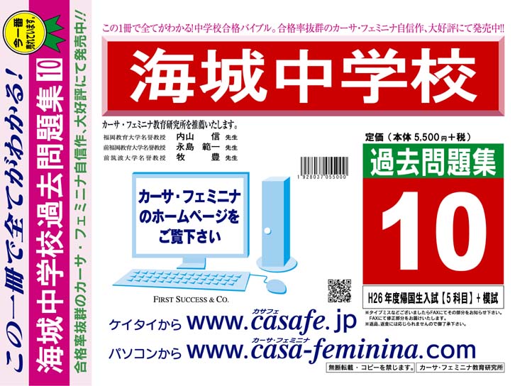 海城中学校 過去問+プラス<合格査定テスト付> 1割引(最新の過去問題集1冊[HPにある過去問のうちの最新]、合格査定テスト)