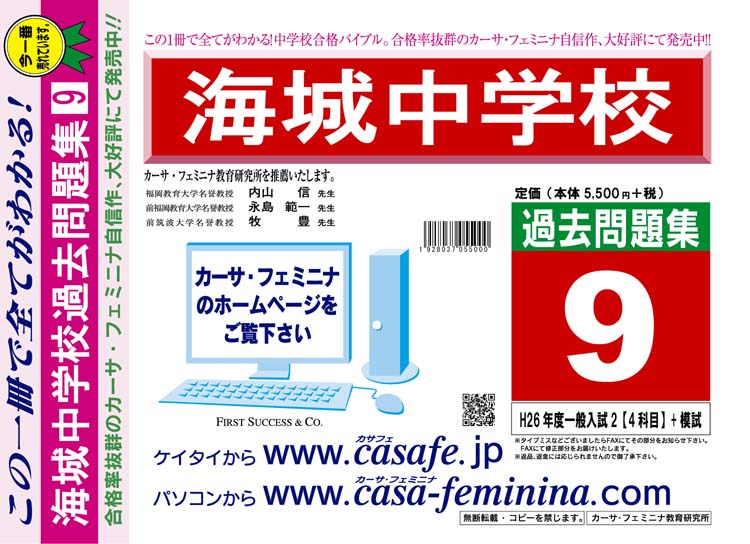 海城中学校 H27年度用過去問題集9(H26/一般入試2【4科目】+模試)