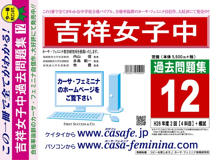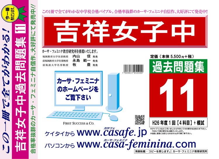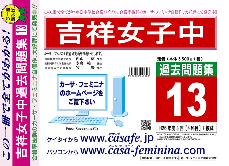 吉祥女子中学校 最新過去問5ヶ年セット[HPにある過去問のうちの5ヶ年] 2割引