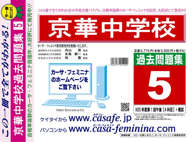 京華中学校 最新過去問5ヶ年セット[HPにある過去問のうちの5ヶ年] 2割引