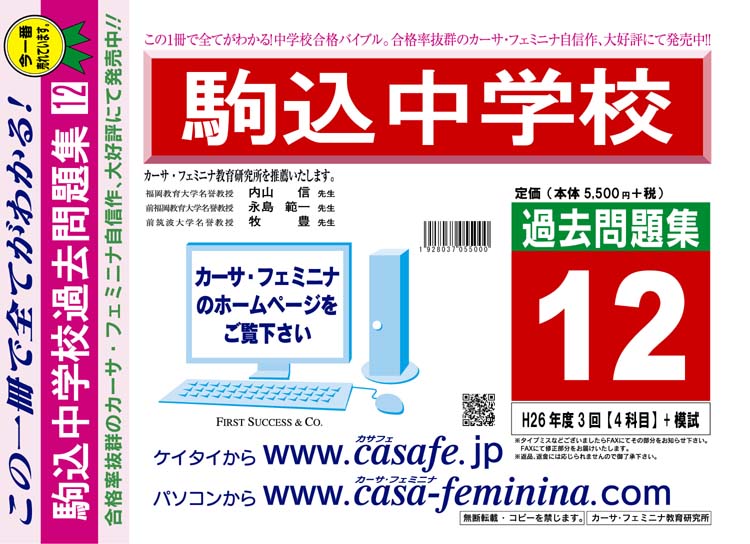 駒込中学校 H27年度用過去問題集12(H26/3回【4科目】+模試)