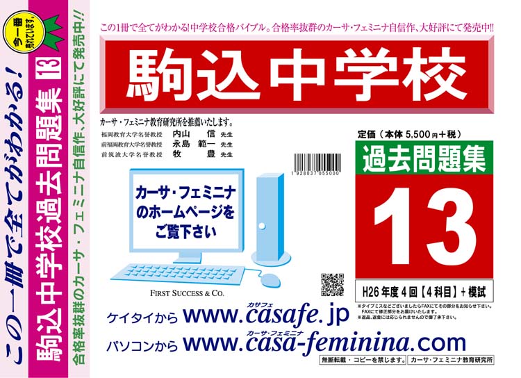 駒込中学校 H27年度用過去問題集13(H26/4回【4科目】+模試)