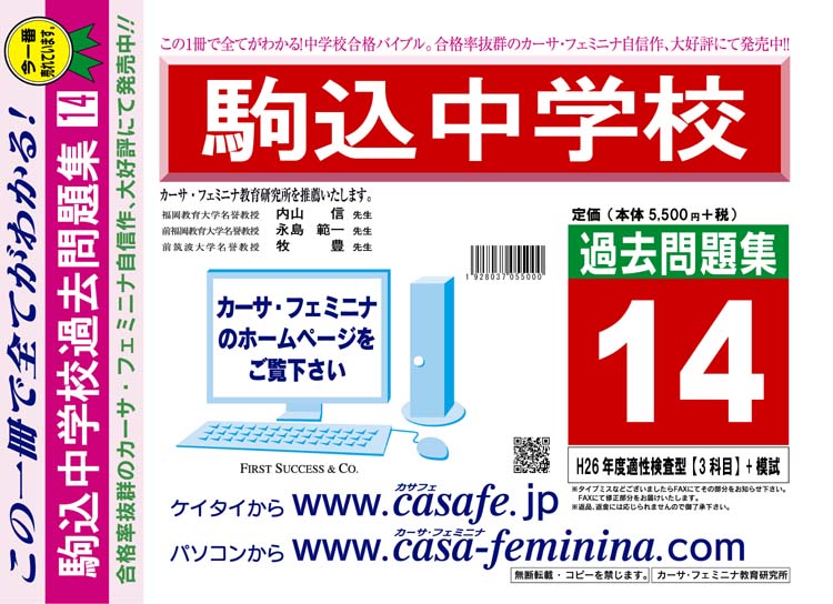 駒込中学校 過去問+プラス<合格査定テスト付> 1割引(最新の過去問題集1冊[HPにある過去問のうちの最新]、合格査定テスト)