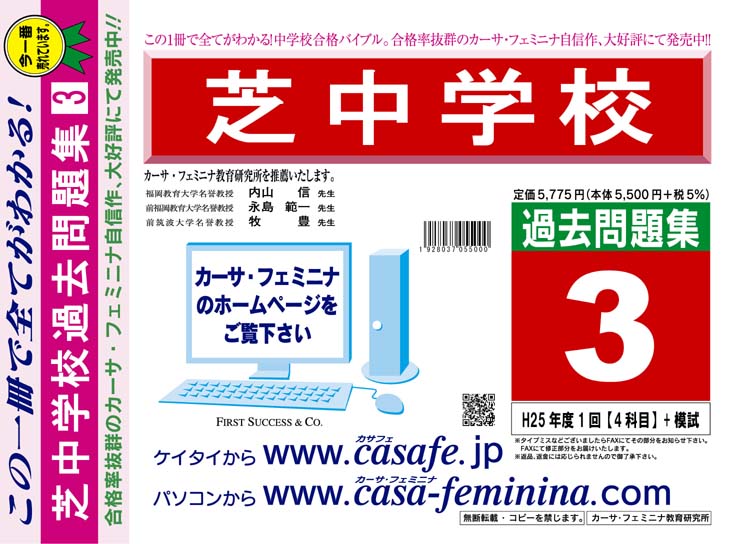 芝中学校 最新過去問3ヶ年セット[HPにある過去問のうちの3ヶ年] 1割引