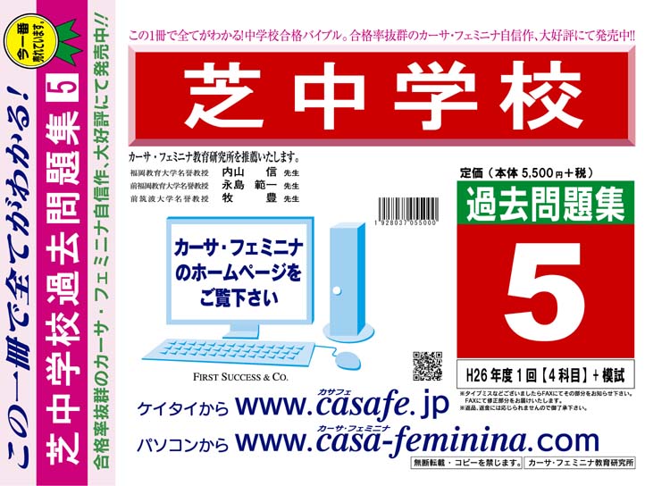 芝中学校 最新過去問5ヶ年セット[HPにある過去問のうちの5ヶ年] 2割引