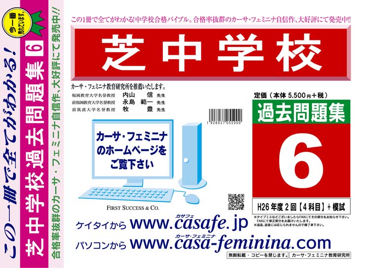 芝中学校 H27年度用過去問題集6(H26/2回【4科目】+模試)