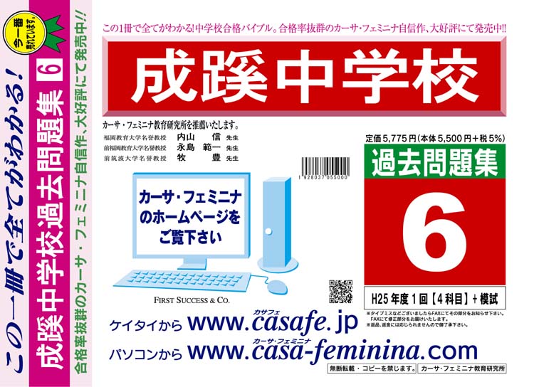 成蹊中学校 最新過去問5ヶ年セット[HPにある過去問のうちの5ヶ年] 2割引