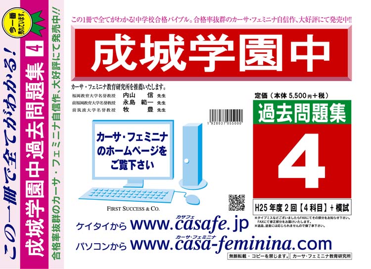 成城学園中学校 最新過去問5ヶ年セット[HPにある過去問のうちの5ヶ年] 2割引