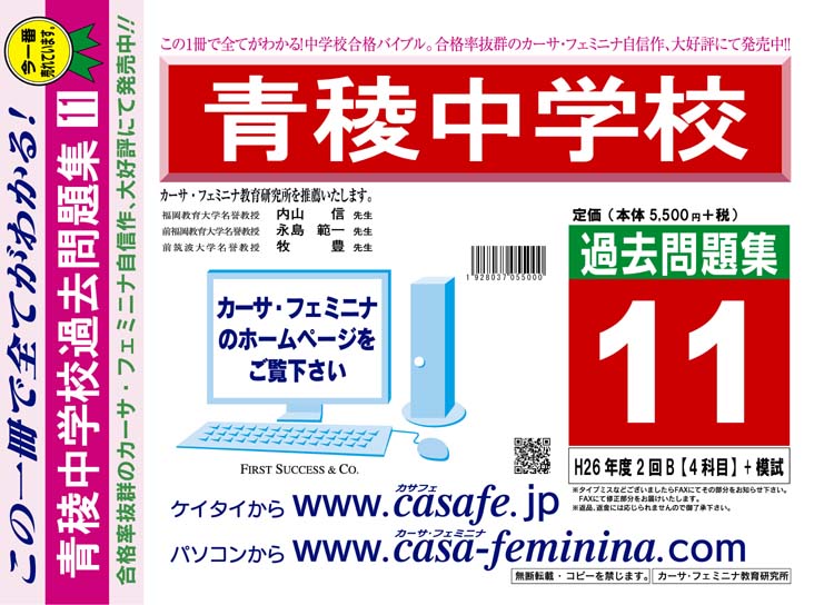 青稜中学校 H27年度用過去問題集11(H26/2回B【4科目】+模試)