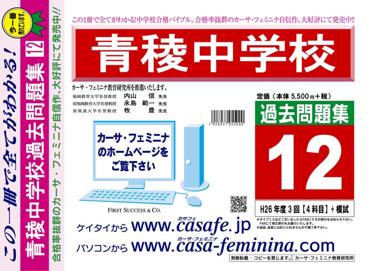 青稜中学校 H27年度用過去問題集12(H26/3回【4科目】+模試)