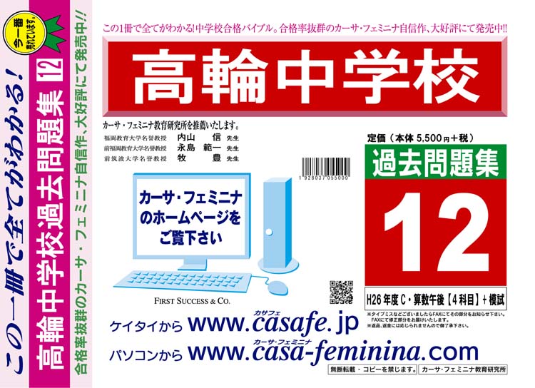 高輪中学校 H27年度用過去問題集12(H26/C・算数午後【4科目】+模試)