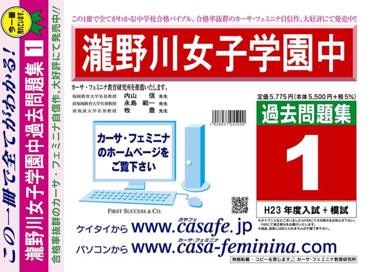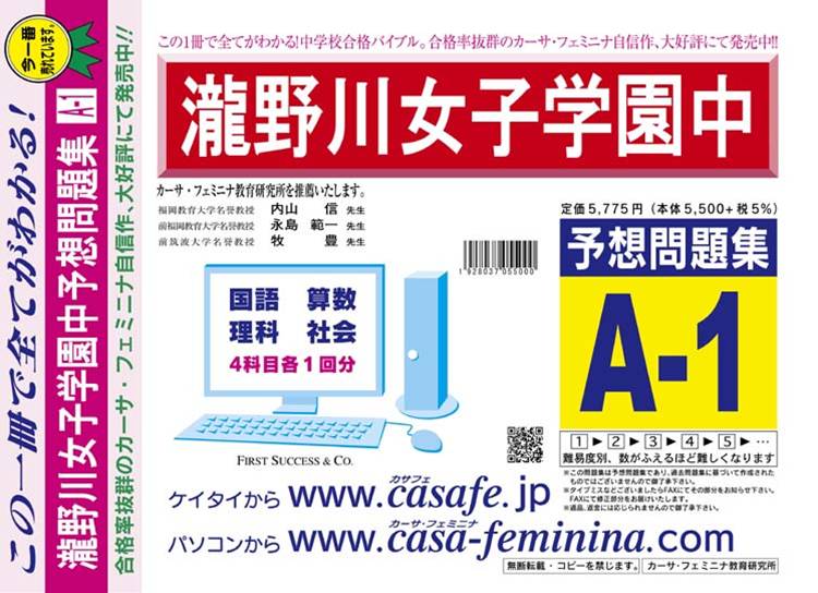 瀧野川女子学園中学校 初心者セット 1割引(最新の過去問題集1冊[HPにある過去問のうちの最新]+予想問題集A1)