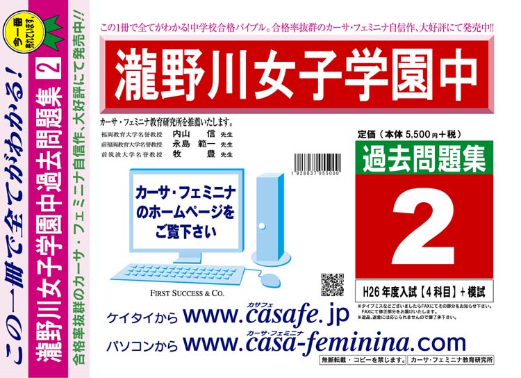 瀧野川女子学園中学校 最新過去問3ヶ年セット[HPにある過去問のうちの3ヶ年] 1割引