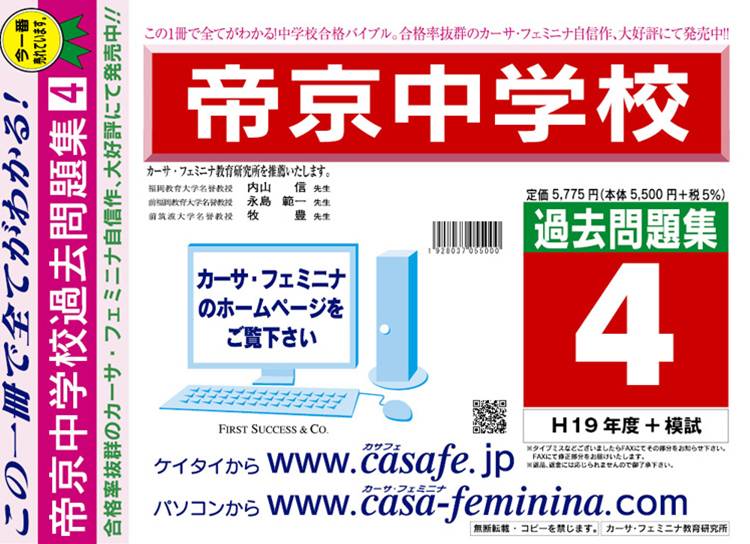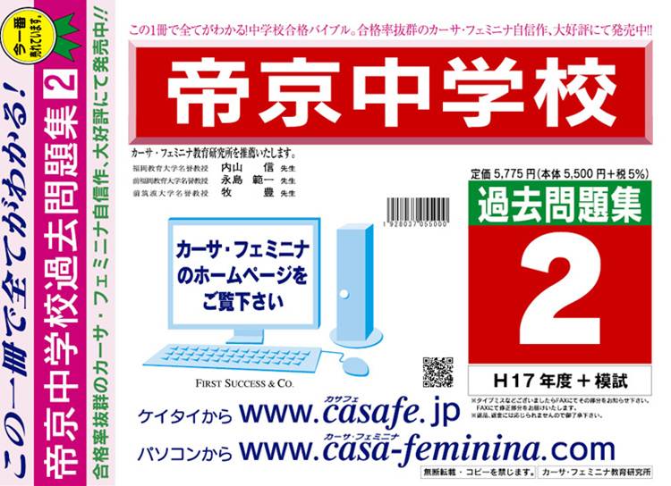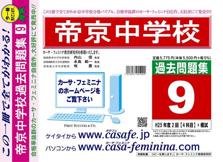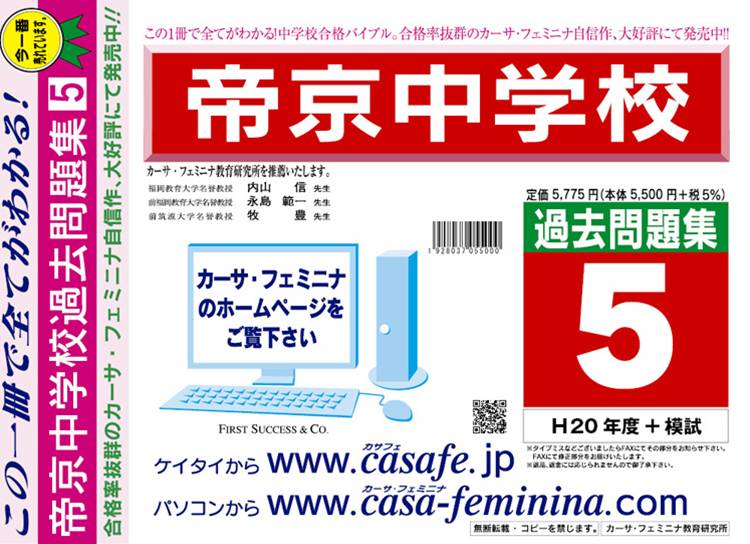 帝京中学校 最新過去問5ヶ年セット[HPにある過去問のうちの5ヶ年] 2割引