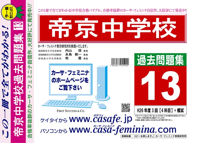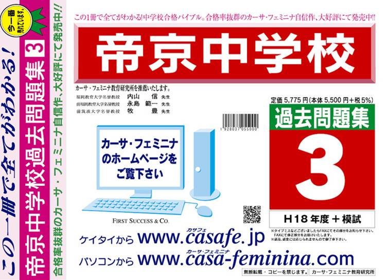 帝京中学校 最新過去問3ヶ年セット[HPにある過去問のうちの3ヶ年] 1割引